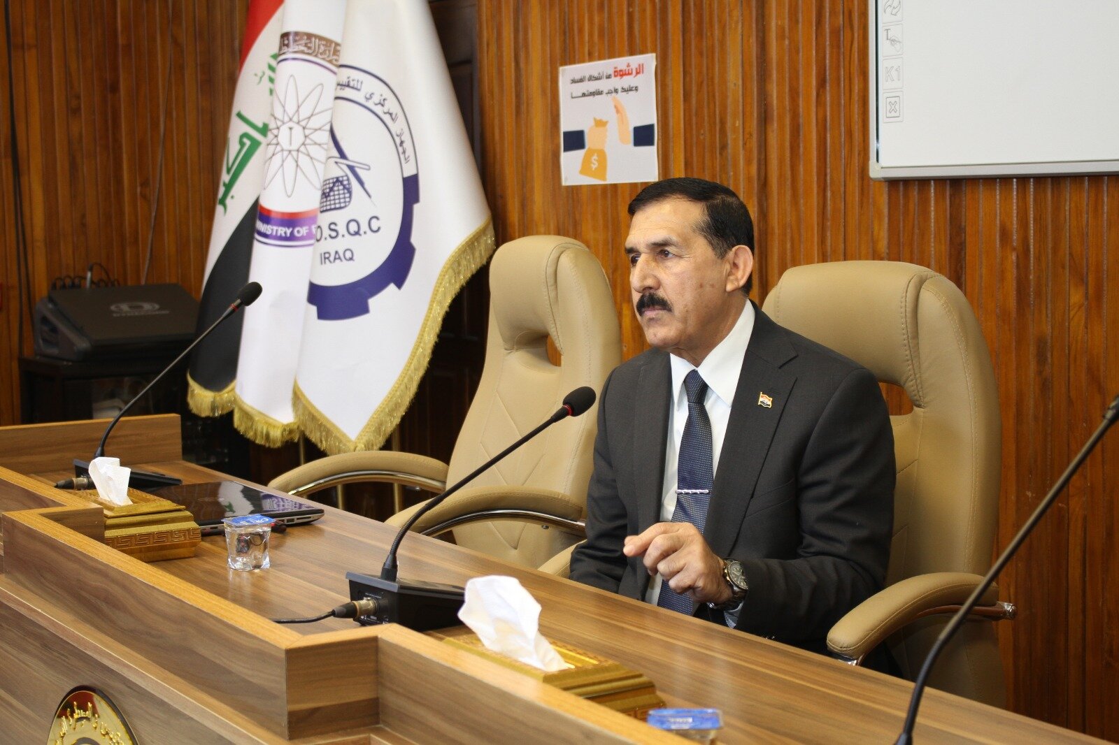 في إطار حرصه على الارتقاء بمستوى الأداء المؤسسي وتعزيز جودة الخدمات المقدمة، التقى الأستاذ الدكتور المهندس فياض محمد عبد، رئيس الجهاز المركزي للتقييس والسيطرة النوعية، اليوم الثلاثاء الموافق 27 كانون الثاني 2026، بالكادر المتقدم للجهاز، والذي ضم كلاً من المهندس مشتاق معين محمد مدير عام دائرة السيطرة النوعية، والسيد مؤيد متعب سالم مدير عام دائرة الخدمات الفنية والإدارية، والسادة معاوني المدراء العامين، إلى جانب السيدات والسادة رؤساء الأقسام في دوائر الجهاز. وشهد اللقاء استضافة نخبة من المواطنين المراجعين لدوائر الجهاز، بهدف الوقوف ميدانياً على المعوقات والتحديات التي تواجههم أثناء إنجاز معاملاتهم، والعمل على معالجتها بشكل فوري، بما يضمن تقديم أفضل الخدمات، وتحقيق أعلى مستويات الجودة، وترسيخ مبادئ الشفافية. وأكد السيد رئيس الجهاز خلال اللقاء توجيهاته بتذليل جميع العقبات أمام المراجعين، وتبسيط الإجراءات، وتسريع إنجاز المعاملات، بما يسهم في تعزيز ثقة المواطن بالمؤسسات الحكومية، وضمان تقديم خدمات نوعية تليق بتطلعات المجتمع وتنسجم مع معايير الجودة المعتمدة. وشدد سيادته على أهمية التواصل المباشر مع المواطنين والاستماع إلى ملاحظاتهم ومقترحاتهم، باعتبارها ركيزة أساسية في تطوير الأداء وتحسين بيئة العمل، وصولاً إلى مؤسسة خدمية فاعلة تستجيب لاحتياجات المواطنين بكفاءة ومهنية عالية.