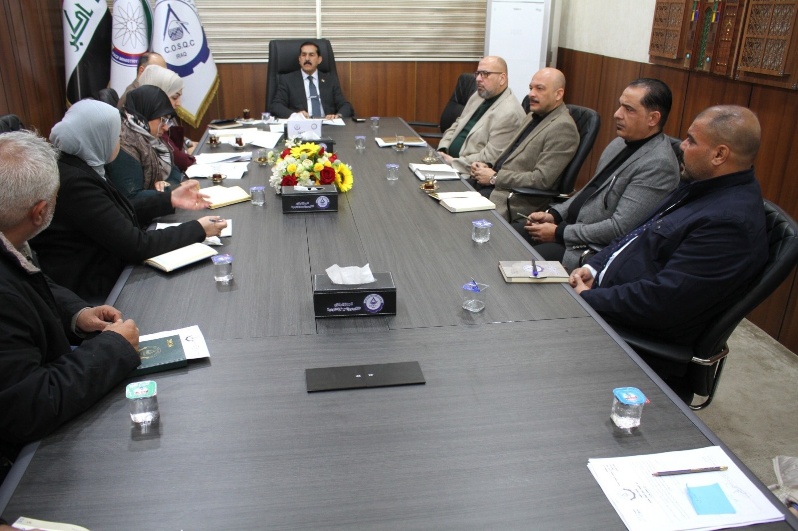 ترأس السيد رئيس الجهاز المركزي للتقييس والسيطرة النوعية الأستاذ الدكتور المهندس فياض محمد عبد، صباح اليوم الأربعاء، اجتماعًا موسعًا بحضور معاون المدير العام لدائرة السيطرة النوعية السيد ميسر إبراهيم إسماعيل، وعدد من مدراء الأقسام في الجهاز المركزي. وجرى خلال الاجتماع متابعة سير العمل وتقييم الأداء الوظيفي للموظفين في دوائر وأقسام الجهاز المركزي، والوقوف على مستوى الإنجاز المتحقق، فضلاً عن تشخيص المشاكل والمعوقات التي تواجه العمل، ومناقشة الآليات والحلول المناسبة لمعالجتها بما يسهم في تحسين الأداء المؤسسي ورفع كفاءة العمل. وأكد السيد رئيس الجهاز خلال الاجتماع على أهمية الالتزام بالضوابط والتعليمات المعتمدة، وتعزيز روح العمل الجماعي، ومضاعفة الجهود لضمان تحقيق أهداف الجهاز في تطبيق معايير الجودة وحماية المستهلك ودعم الاقتصاد الوطني، مشددًا على ضرورة المتابعة المستمرة وتذليل العقبات لضمان انسيابية العمل وتحقيق أفضل النتائج.