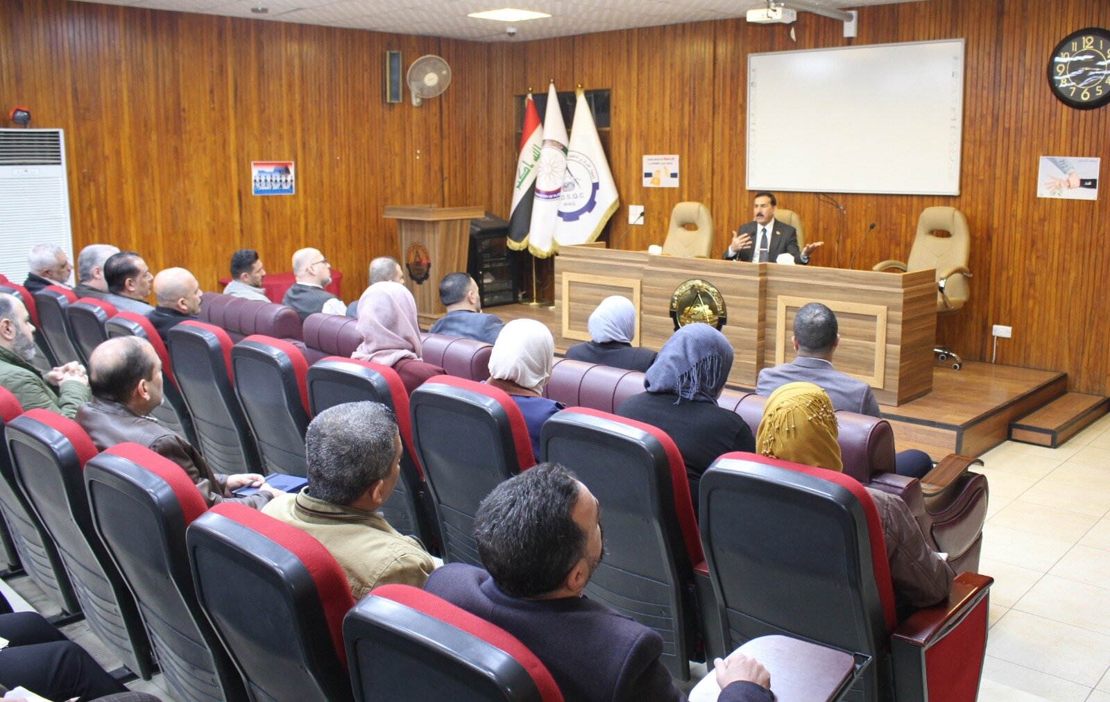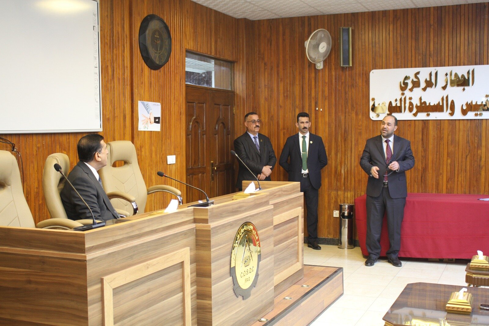 في إطار حرصه على الارتقاء بمستوى الأداء المؤسسي وتعزيز جودة الخدمات المقدمة، التقى الأستاذ الدكتور المهندس فياض محمد عبد، رئيس الجهاز المركزي للتقييس والسيطرة النوعية، اليوم الثلاثاء الموافق 27 كانون الثاني 2026، بالكادر المتقدم للجهاز، والذي ضم كلاً من المهندس مشتاق معين محمد مدير عام دائرة السيطرة النوعية، والسيد مؤيد متعب سالم مدير عام دائرة الخدمات الفنية والإدارية، والسادة معاوني المدراء العامين، إلى جانب السيدات والسادة رؤساء الأقسام في دوائر الجهاز. وشهد اللقاء استضافة نخبة من المواطنين المراجعين لدوائر الجهاز، بهدف الوقوف ميدانياً على المعوقات والتحديات التي تواجههم أثناء إنجاز معاملاتهم، والعمل على معالجتها بشكل فوري، بما يضمن تقديم أفضل الخدمات، وتحقيق أعلى مستويات الجودة، وترسيخ مبادئ الشفافية. وأكد السيد رئيس الجهاز خلال اللقاء توجيهاته بتذليل جميع العقبات أمام المراجعين، وتبسيط الإجراءات، وتسريع إنجاز المعاملات، بما يسهم في تعزيز ثقة المواطن بالمؤسسات الحكومية، وضمان تقديم خدمات نوعية تليق بتطلعات المجتمع وتنسجم مع معايير الجودة المعتمدة. وشدد سيادته على أهمية التواصل المباشر مع المواطنين والاستماع إلى ملاحظاتهم ومقترحاتهم، باعتبارها ركيزة أساسية في تطوير الأداء وتحسين بيئة العمل، وصولاً إلى مؤسسة خدمية فاعلة تستجيب لاحتياجات المواطنين بكفاءة ومهنية عالية.
