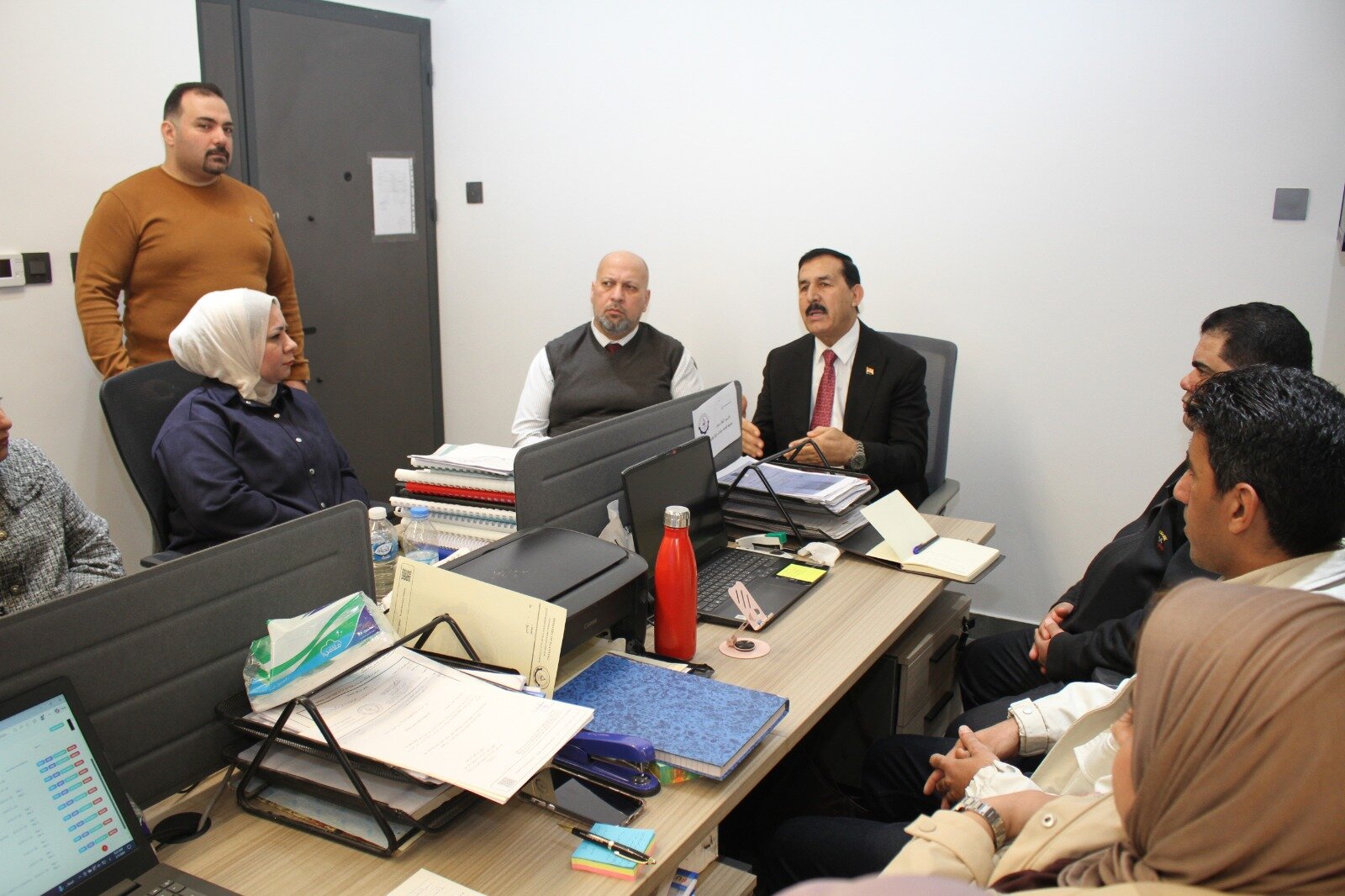 أجرى السيد رئيس الجهاز المركزي للتقييس والسيطرة النوعية الأستاذ الدكتور المهندس فياض محمد عبد، اليوم الأحد، جولة ميدانية لمتابعة شؤون المواطنين في وحدة الاستعلامات والاطلاع على سير الأداء الوظيفي في دوائر وأقسام الجهاز، مؤكداً على أهمية تسهيل الإجراءات أمام المواطنين وتقديم أفضل الخدمات بما يعزز كفاءة العمل المؤسسي. وأكد سيادته خلال الجولة على ضرورة انسيابية العمل وسرعة إنجاز المعاملات، فضلاً عن متابعة التزام الموظفين بالضوابط والتعليمات المعتمدة، بما يسهم في الارتقاء بجودة الخدمات المقدمة للمراجعين. وفي سياق متصل، التقى السيد رئيس الجهاز بعدد من منتسبي دائرة السيطرة النوعية، واستمع إلى مقترحاتهم وآرائهم، مبيناً أهمية تعزيز التواصل المباشر مع المواطنين وتذليل المعوقات التي تواجههم، ومشدداً على ضرورة الالتزام بالشفافية والدقة في أداء المهام، بما ينسجم مع توجهات الجهاز المركزي في تحسين بيئة العمل وتطوير الأداء المؤسسي.